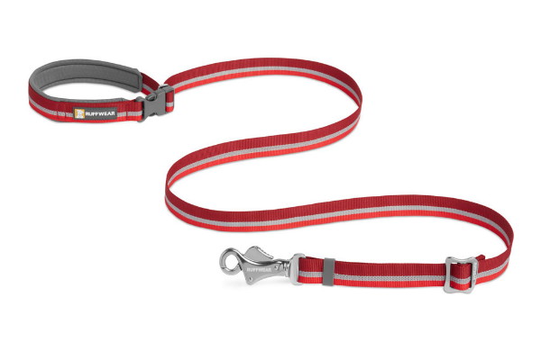 クラッグリーシュは110cmから180cmまで、長さを変えられる2WAYリーシュです。持ち手はパッド入りで手に優しいデザインで、素早くウエストリーシュに切り替えることができます。
