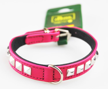 ピラミッド型のシルバースタッツがハードで大人っぽい印象を与える小型犬用カラーです。
