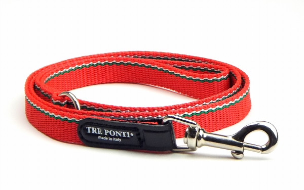 ベーシックなナイロン/ポリエステル系のテープにイタリア国旗カラーのラインが入ったおしゃれなリード! Tre Ponti(トレ・ポンティ)の小型犬用ハーネスと併せてのご使用がおすすめです。 ハーネスや首輪と繋ぐための金具は一般的なナスカンタイプ。 先端のTre Pontiロゴがアクセントとなって、おしゃれな印象を 与えるのはさすがイタリアブランドといったところです。 |